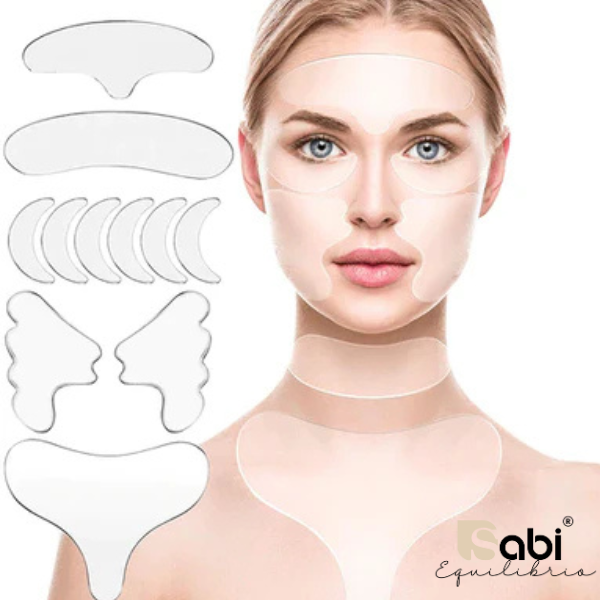 18 × Láminas inteligentes de silicona antirrugas para aplicar en rostro, frente, cuello y escote.